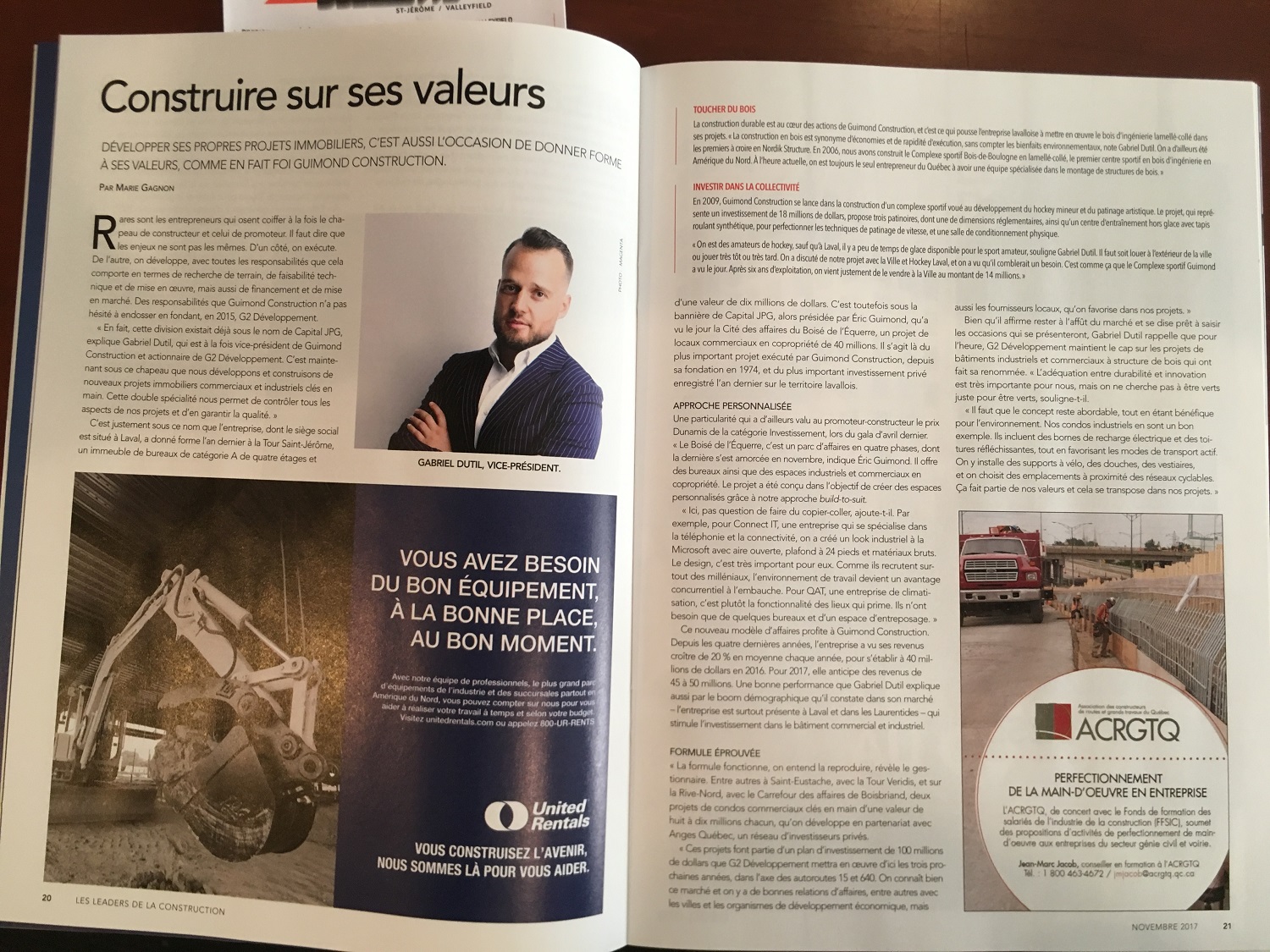 Un excellent reportage à lire sur Guimond Construction paru dernièrement dans la publication «Les leaders de la construction»